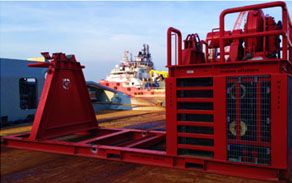 This winch is designed to rotate reels of wire, rope, cables or umbilical. There are three removable shafts of different diameters that support the reel through a hole in the centre with the shaft acting like an axle. The unit can accept reels up to 150Tonnes in weight.. The unit is equipped with 3 sizes of shaft, 5”, 7”, & 9” in Diameter. These diameters can be tailored to suit differing reel bores via project specific adaptors.
